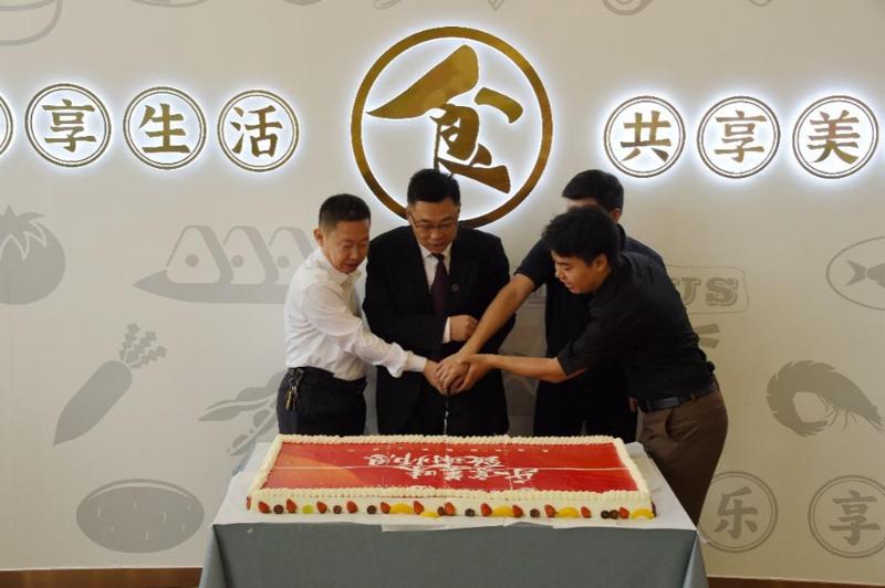殷杰、薛晋文、李宏荣、王枝胜与合作方乐味餐饮负责人李民、华北营销负责人冯程等共同进行了开灶剪彩。