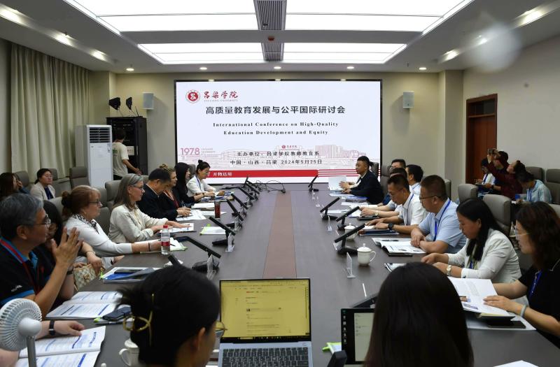 5月24日-25日,由我校教师教育系主办的“高质量教育发展与公平”国际研讨会在弘智楼一层会议室举办,本次研讨会共邀请来自美国、香港及山西师范大学、陕西科技大学的8位专家教授出席研讨会,共同探讨高质量教育发展与公平问题,校党委副书记、院长薛晋文出席并致欢迎词,党委常委、副院长刘宝琦主持会议。