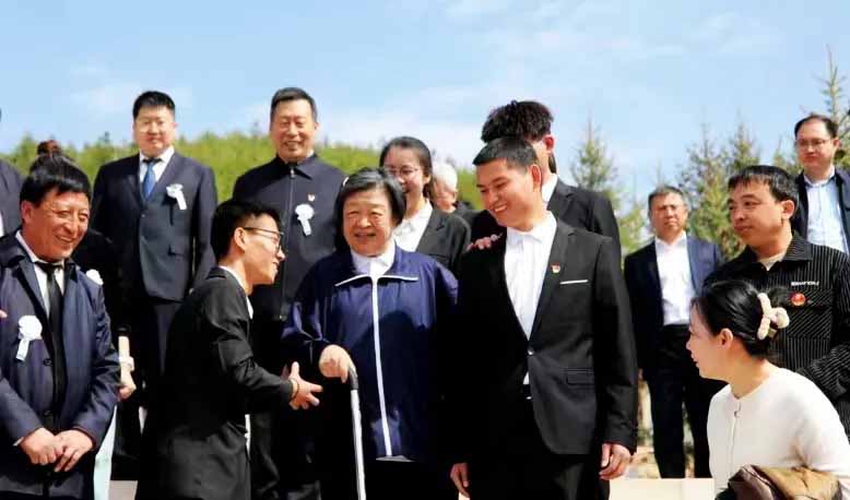 2024年清明在晋绥解放区烈士陵园,贺晓明大姐(中)与吕梁学院学生们交流。她左手扶着的学生是高星皓。