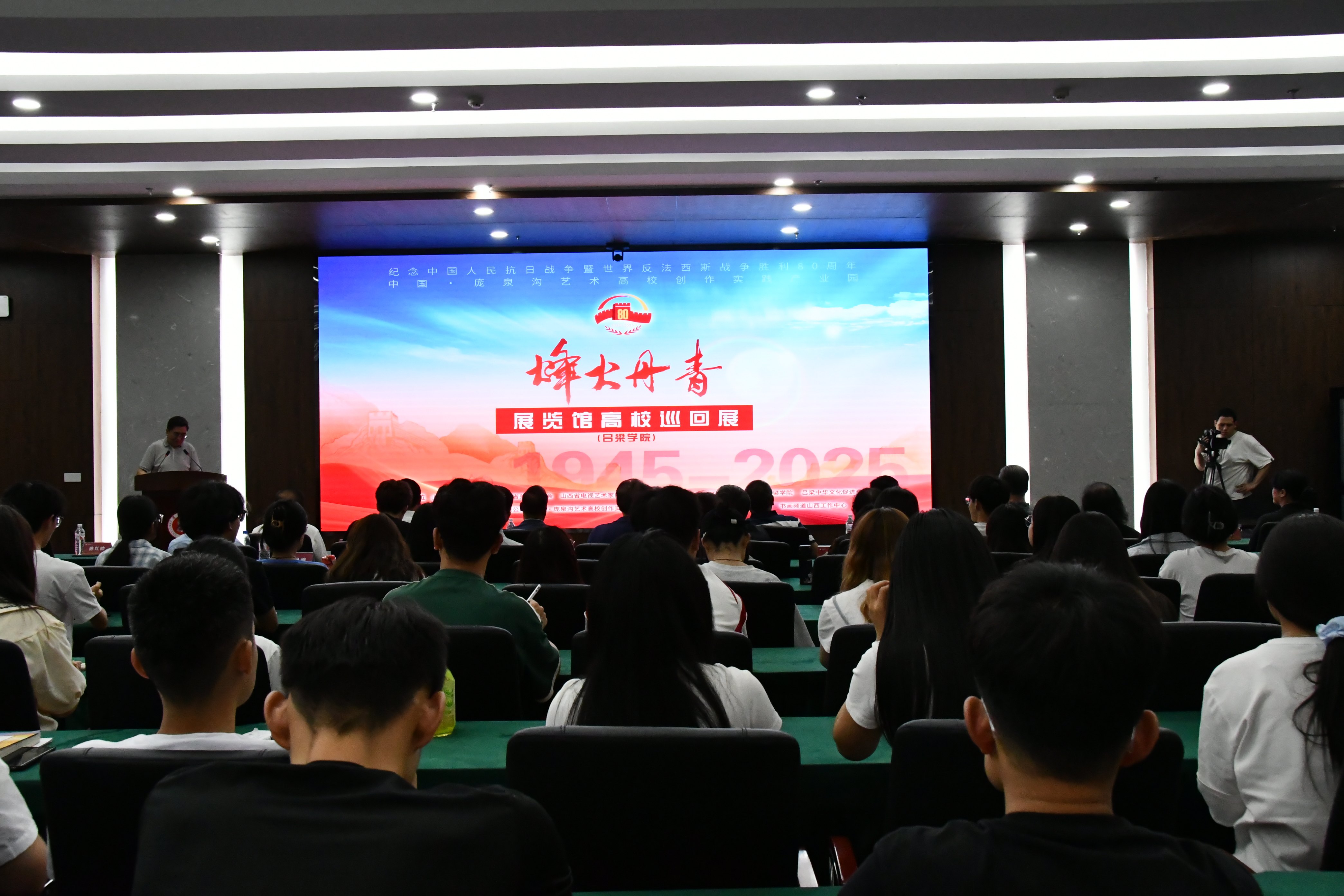 为纪念中国人民抗日战争暨世界反法西斯战争胜利80周年,6月20日,中国·庞泉沟艺术高校创作实践产业园“烽火丹青”展览馆高校巡回展走进吕梁学院。