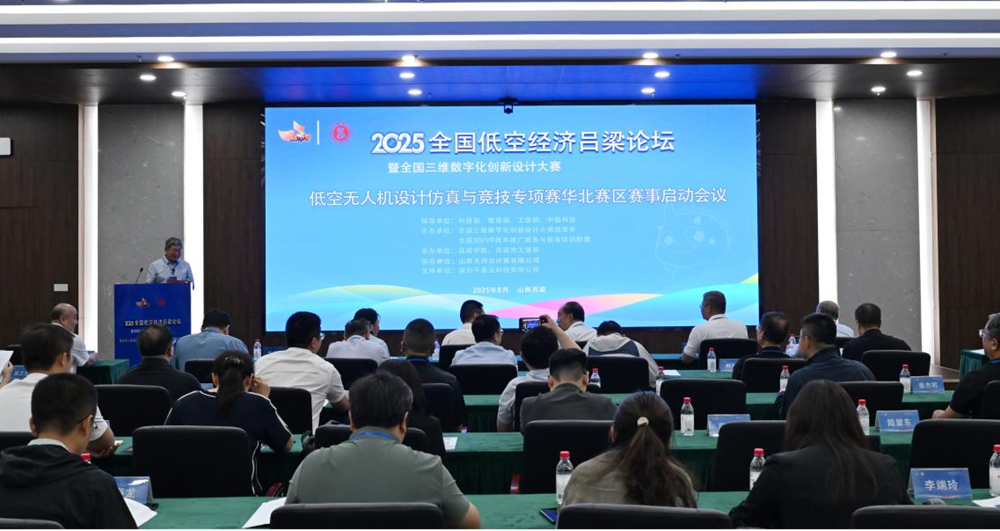 此次全国低空经济吕梁论坛暨专项赛华北赛区赛事启动会的成功举办,标志着全国三维数字化创新设计大赛低空无人机设计仿真与竞技专项赛在华北地区正式启动。随着赛事的推进与区域协同的深化,必将为华北地区低空经济发展注入新动能,为全国低空无人机创新人才培养贡献新力量。