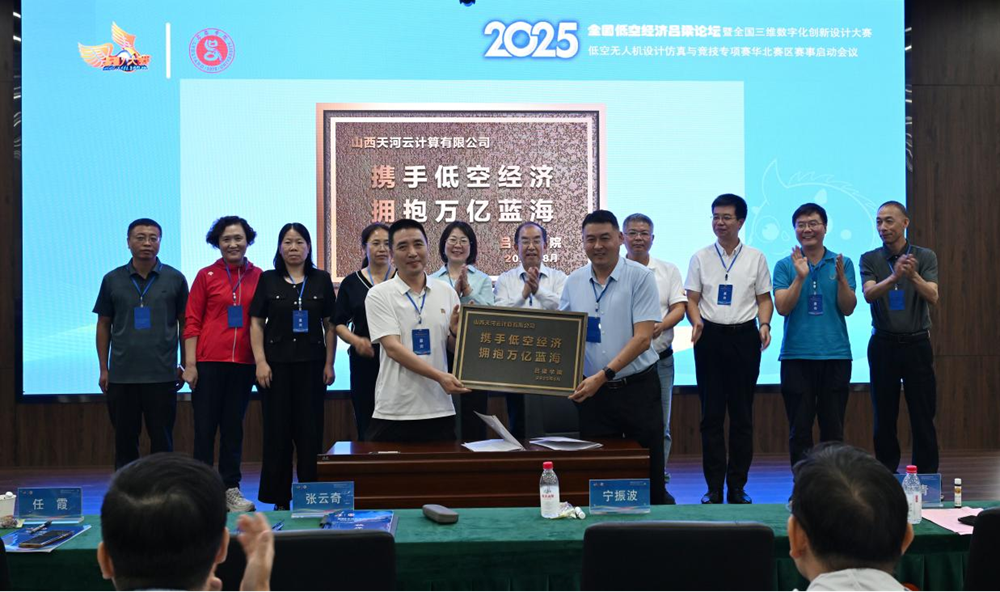 随后,举行了华北赛区组委会成立暨赛事启动仪式,并为相关人员颁发聘书。会上,我校与山西天河云计算有限公司双方代表共同签订了战略合作协议,并赠送了“携手低空经济,拥抱万亿蓝海”的牌匾。