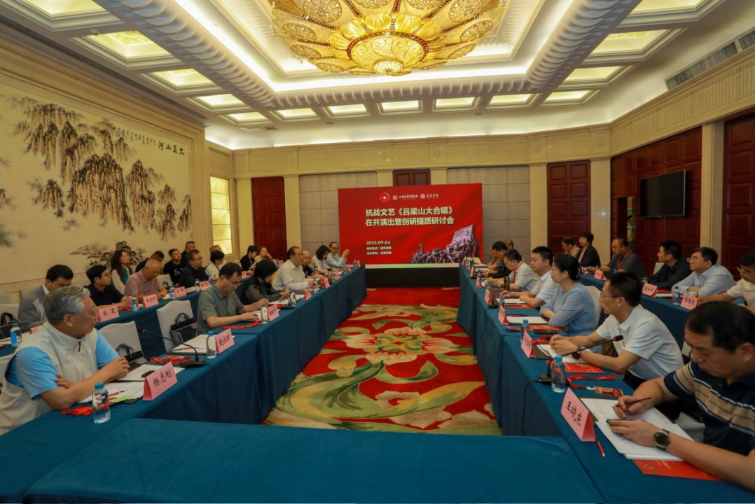 研讨会现场,气氛热烈,与会人员围绕《吕梁山大合唱》创研提质工作展开深入研讨交流,高度评价抗战文艺《吕梁山大合唱》的历史意义和时代价值,积极建言献策,探索其在新时代背景下的再创作路径,进一步挖掘思政育人元素,彰显时代文化价值。