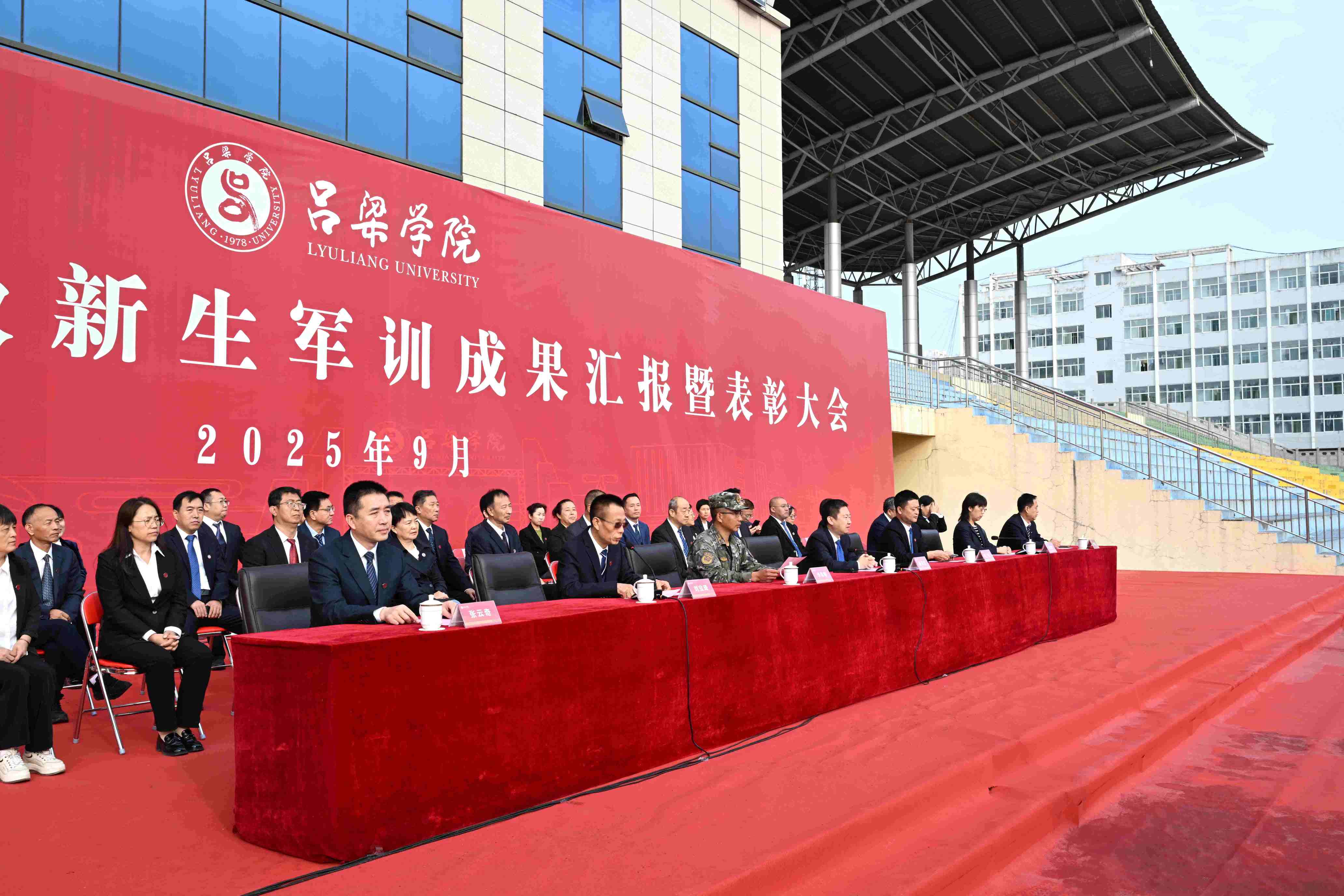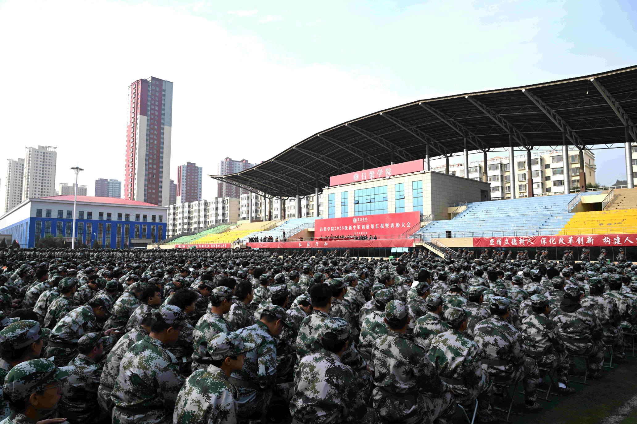 9月29日,我校在田径场举行2025级新生军训成果汇报暨表彰大会。党委书记薛晋文,党委副书记、校长铁军,校领导张雪航、王枝胜、张云奇出席会议,党委常委、副校长刘宝琦主持会议。承训部队首长及教官、党政职能部门负责人、各院系党总支书记、主任,党总支副书记、分团委书记、新生辅导员、2025级全体新生参加会议。