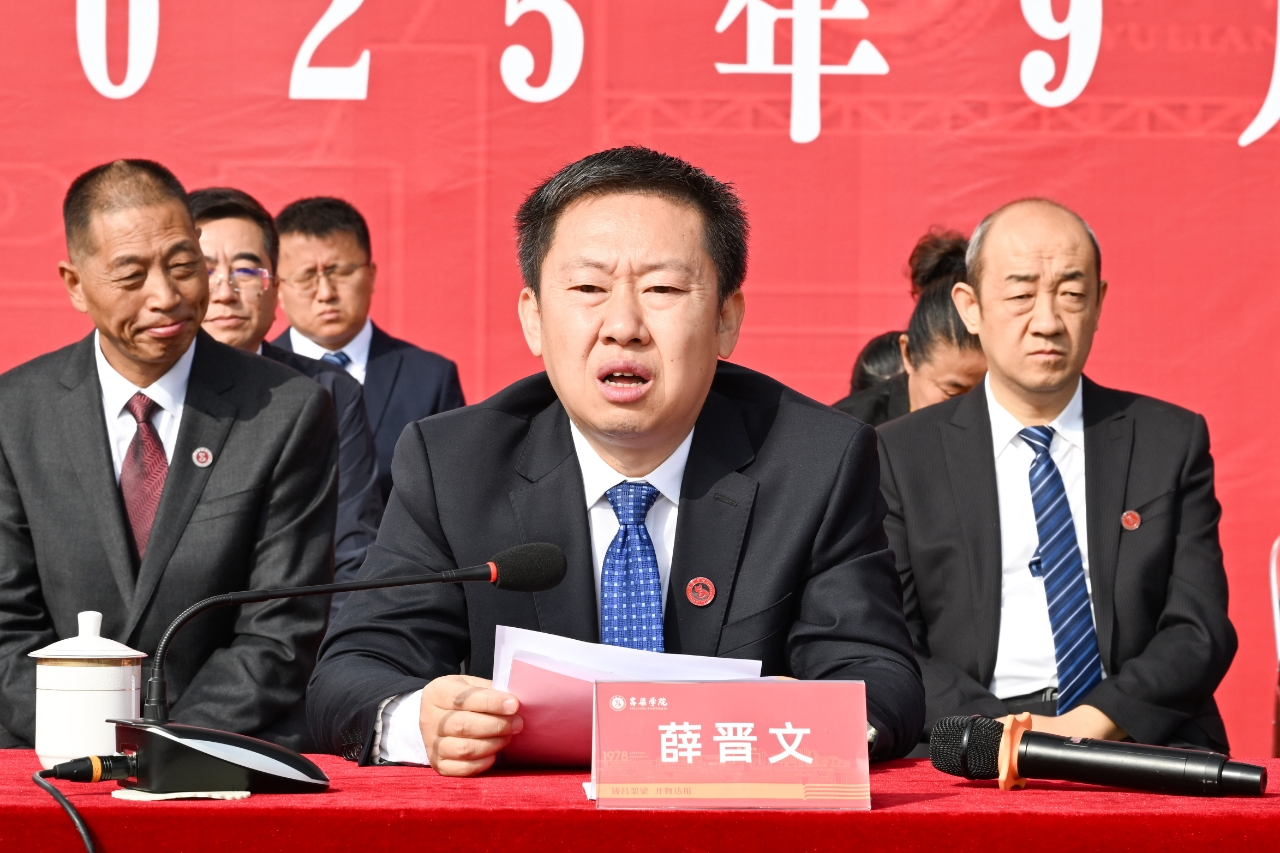 薛晋文代表校党委和全体师生员工,向圆满完成军训任务的全体新生表示祝贺,向为本次军训付出辛勤汗水的武警吕梁支队全体教官致以崇高敬意和衷心感谢,向精心组织、全程陪伴的各院系领导、辅导员和老师们表示诚挚问候。