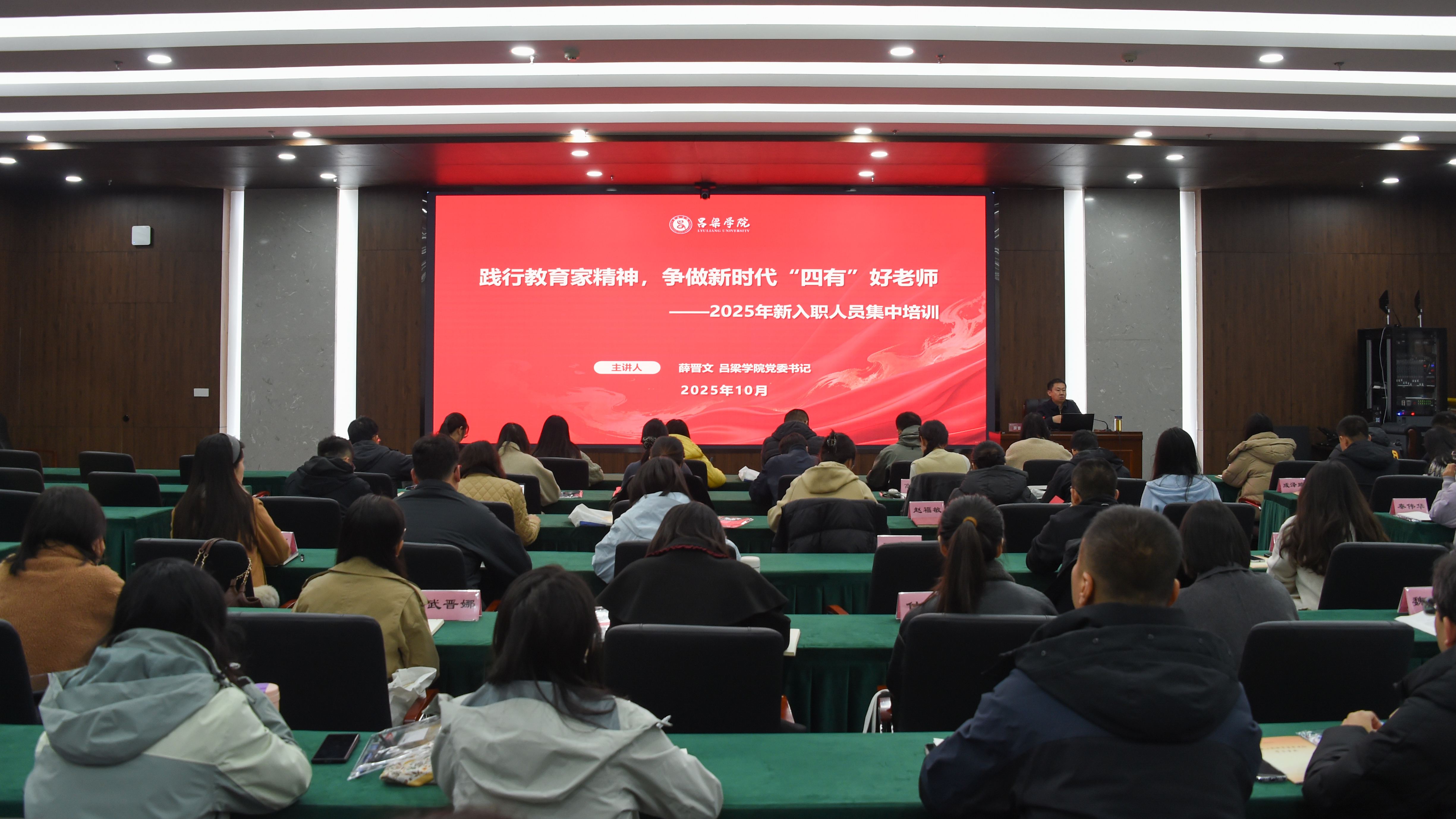 10月24日,我校教师工作部在弘智楼8层会议室举行了以“青椒·弘毅行”为主题的2025年新入职人员校内集中岗前培训。校党委书记薛晋文出席并为74名新入职人员讲授了题为《践行教育家精神,争做新时代“四有”好老师》的“入职第一课”。