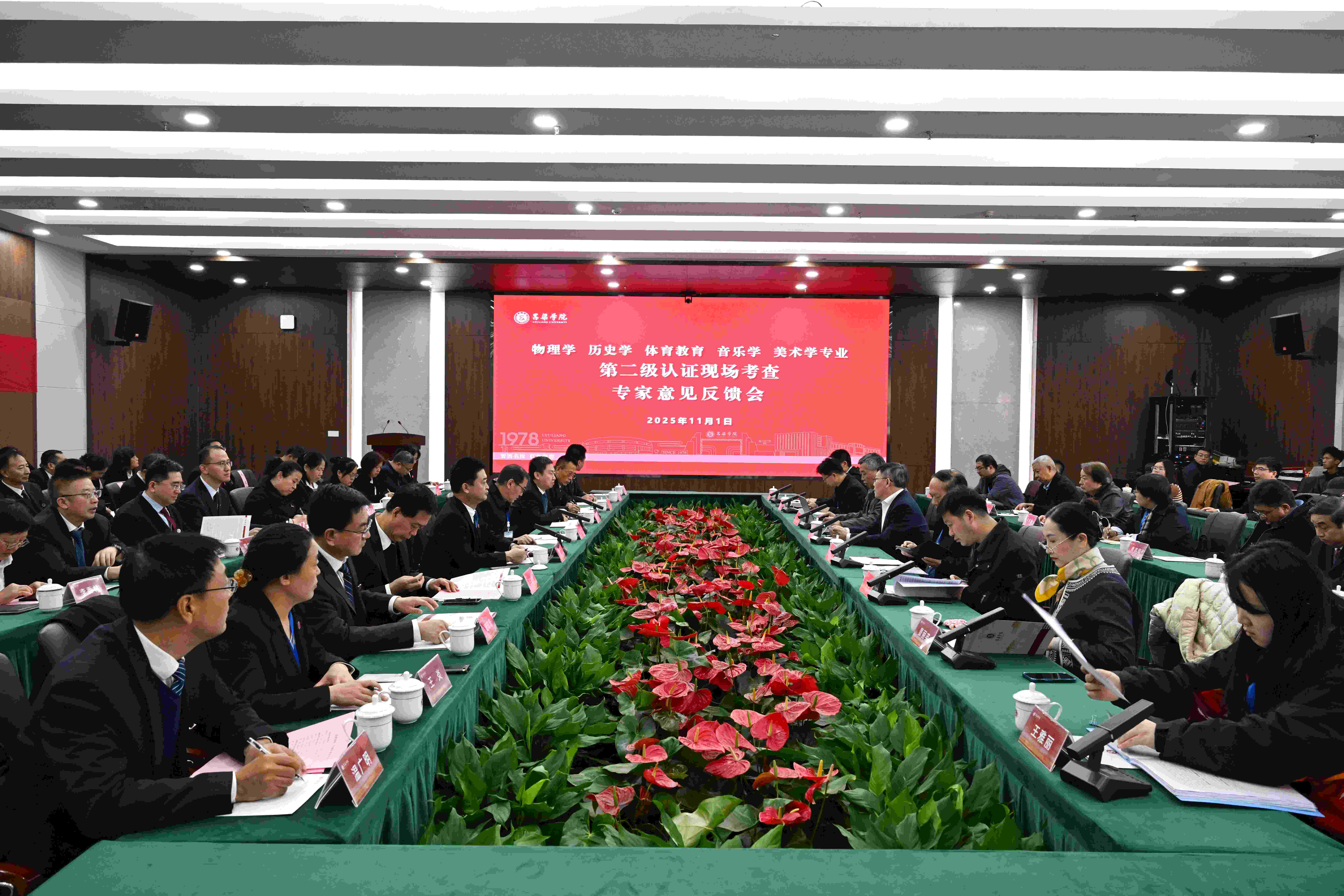 11月1日上午,我校在弘智楼八层会议室召开师范类专业第二级认证联合考查专家反馈会,由齐鲁师范学院原党委书记林松柏为专家组联合组长的教育部师范类专业认证专家组27人,山西省教科院党委委员、研究员薛继红出席会议。校党委书记薛晋文,党委副书记、校长铁军以及校领导张雪航、刘宝琦、王枝胜、张云奇出席会议,相关系部和部门负责人参加会议。