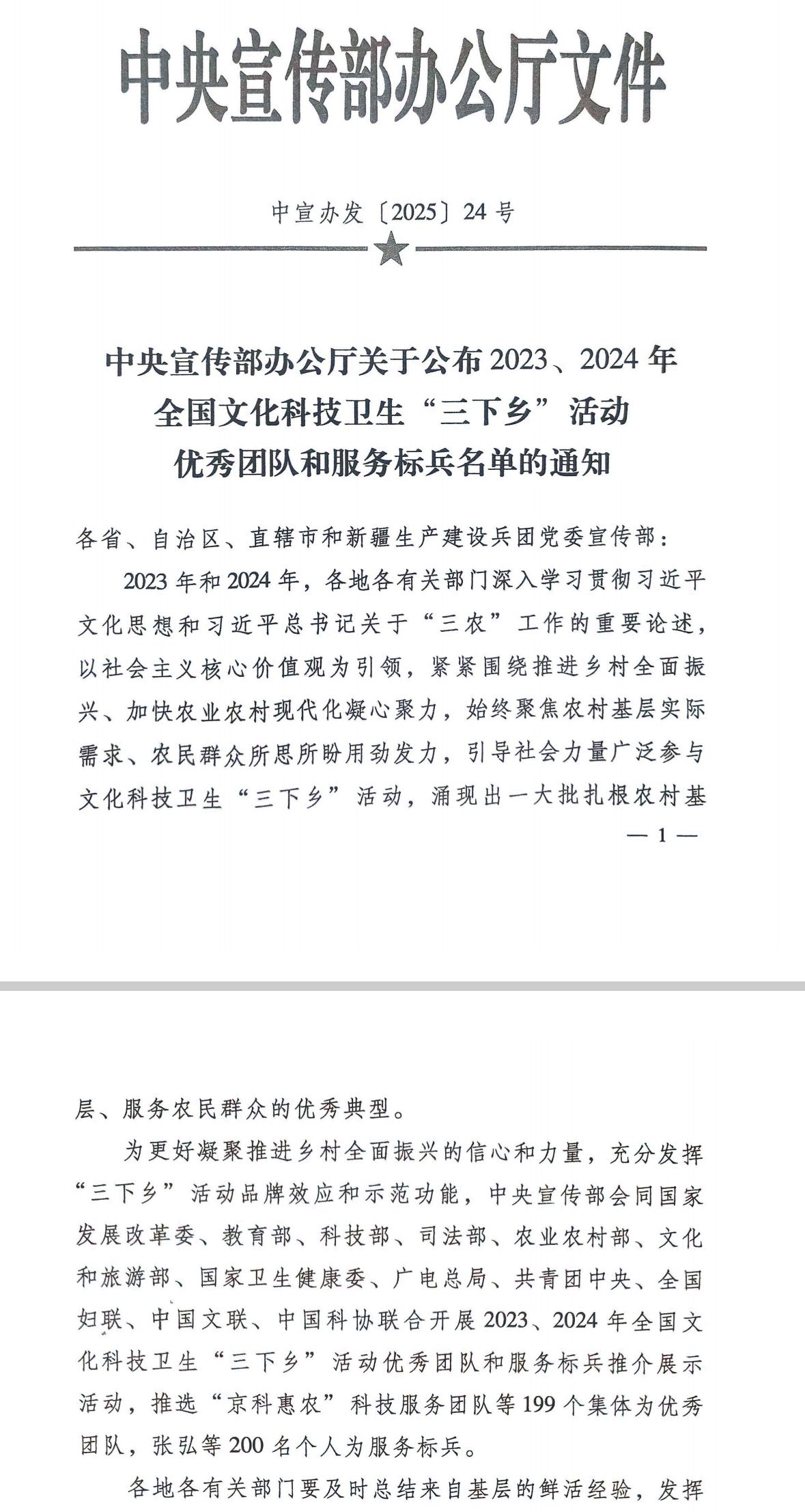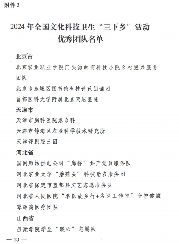 近日,中央宣传部办公厅发布关于2023、2024年全国文化科技卫生“三下乡”活动优秀团队和服务标兵名单的通知,我校“暖心”志愿队榜上有名,荣获2024年全国文化科技卫生“三下乡”活动优秀团队。这是我校首次荣获此项殊荣,来之不易。