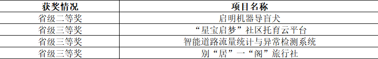 本次三创赛省赛共有百余支队伍,其中我校共派出15支队伍进行省赛比拼。最终我校共有4支队伍获奖,其中有我系3支队伍所设计的项目:启明机器导盲犬项目获省级二等奖,智能道路流量统计与异常检测系统项目、别“居”一“阁”旅行社项目均获省级三等奖。
