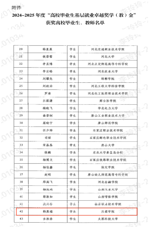 近日,教育部公布了2024-2025年度“高校毕业生基层就业卓越奖学(教)金”获奖人选名单,我校2016届毕业生韩晨瑞榜上有名。