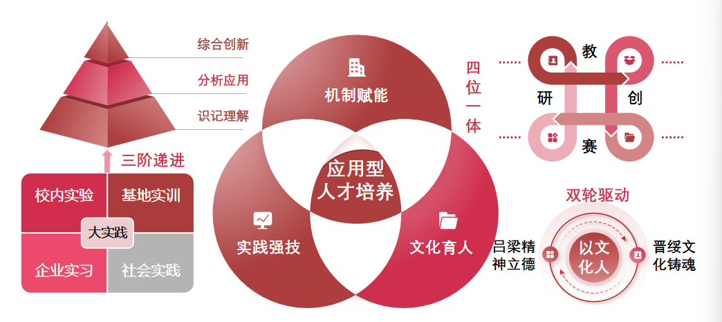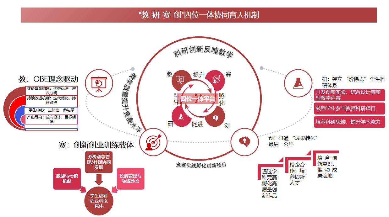 以OBE教育理念为指引,构建适配应用型人才培养的现代化管理机制。坚持以学生为中心、以产出为导向,破除制约学生成长的制度壁垒,建立优“出”优“绩”的质量评价体系,推动“教学改革+科学研究+学科竞赛+创新创业”深度融合,全面激发师生干事创业活力。